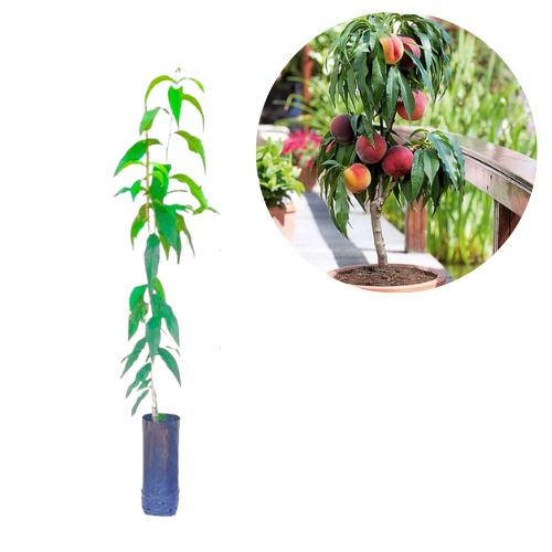 Muda de pêssego anão enxertada, desenvolvida especialmente para quem deseja colher pêssegos em vasos ou pequenos espaços. Planta compacta, produtiva e de fácil manejo.