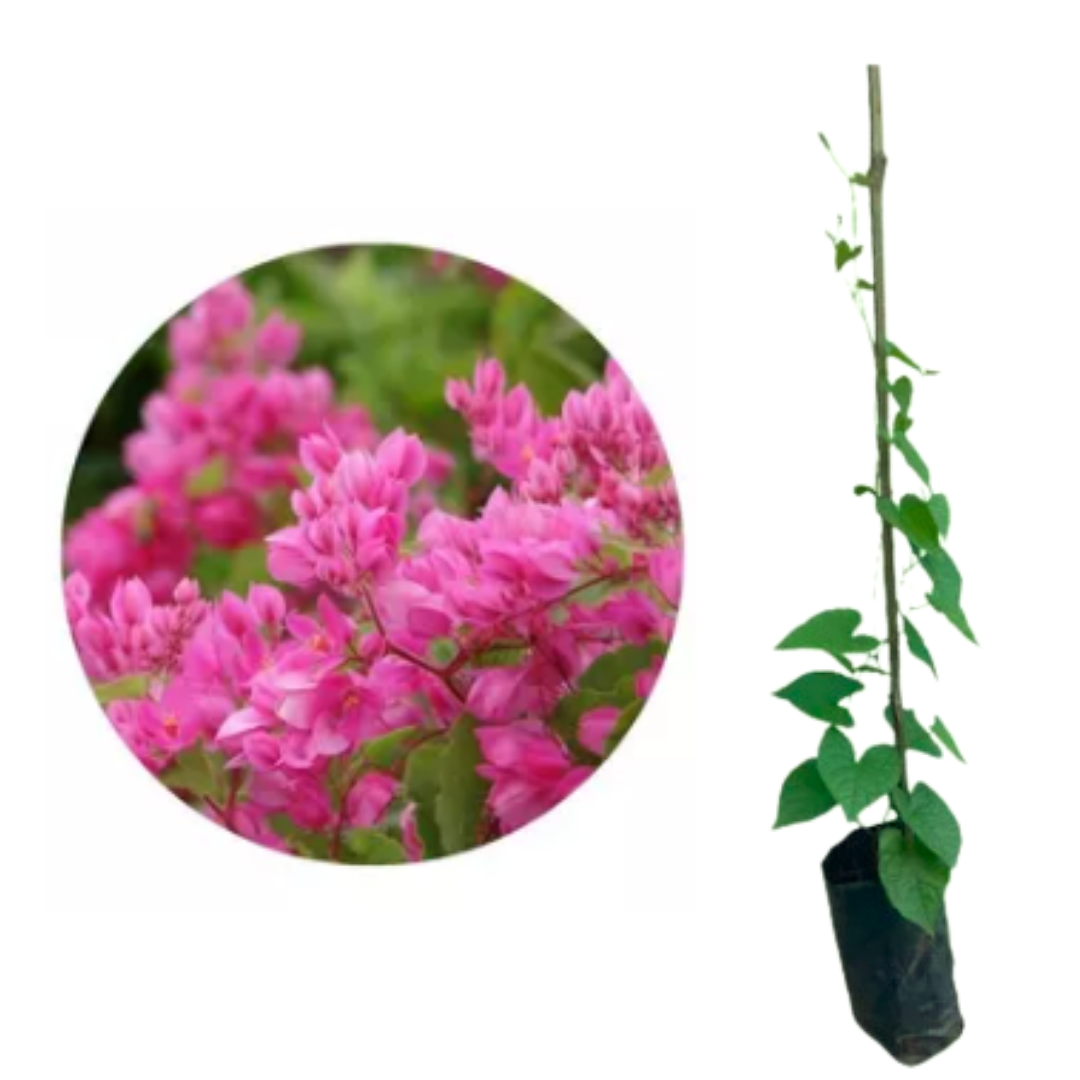 O Amor Agarradinho Rosa ( Antigonum leptopus ) é uma trepadeira semiherbácea de crescimento bastante vigoroso porém de aspecto muito ornamental. É nativa do México, pertence à família das poligonáceas e sua floração é abundante na coloração rosa-vivo florescendo durante o verão e outono. Sua ramagem é bastante densa o que a torna excelente opção para cobrir cercas, grades, alambrados e caramanchões.
